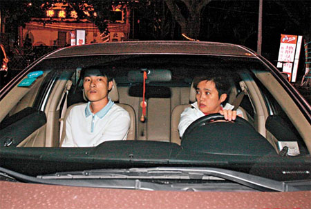 張母(右)及一名疑似張茆弟弟的男子,昨日由張家的?谠⑺{車出外。