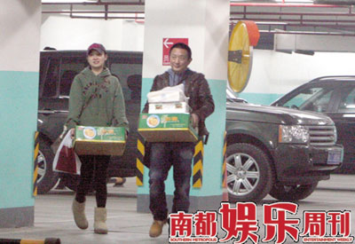 去年10月中旬媒體爆出張黎與結(jié)婚三年的明星妻子劉蓓正式離婚,而被派領(lǐng)“第三者”之名的則是與張黎剛剛合作百集電視劇《中國往事》的小宋佳,面對炒得沸沸揚(yáng)揚(yáng)的緋聞張黎不做回應(yīng),小宋佳則斥之以“胡扯”。后來,兩個(gè)月之后,張黎和小宋佳卻被我們周刊拍到兩人親密逛街,后來還一同回家,當(dāng)天張黎身上的這件羽絨服與宋佳的那件是同一個(gè)牌子,兩人前后腳一同把在超市買回來的“戰(zhàn)利品”抱回家,狀甚甜蜜。