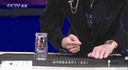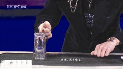 這個魔術(shù),實際上董卿是個托,因為魔術(shù)不涉及職業(yè)道德的問題,只要給觀眾一個驚喜就可以了,董卿在兩個硬幣上簽名,當然字體和樣式要相近,私下里簽好的早已經(jīng)給劉謙了。這時,硬幣掉在了桌面上,細心的觀眾可以明顯的看到硬幣的反光。