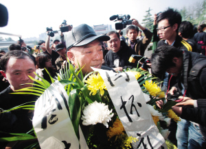 昨天早上9點40分,遲重瑞、汪粵、六小齡童、馬德華舉著花圈一起到場,“唐僧師徒”隊伍中唯獨缺少了“沙師弟”,情景一時分外感傷。隨后,“白龍馬”王伯昭、新版《西游記》沙僧扮演者劉大剛、“如來佛”朱龍廣、“梨山老母”孫鳳琴、“女兒國國王”朱琳,北京人藝的蘇民、修宗迪、楊立新先后到場。此外,閆懷禮生前在人藝的老同事、老同學以及自發(fā)前來的普通群眾共幾百人聚集在靈堂門口,手持鮮花含淚為“沙僧”送行。