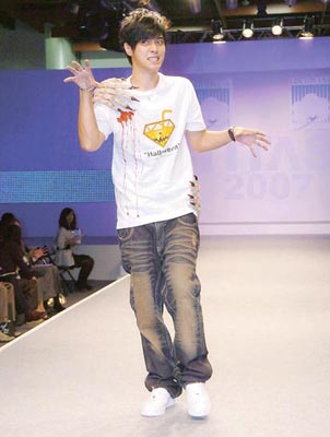 據(jù)香港明報(bào)報(bào)道,小豬透露T恤上的一對鬼手是請媽媽連夜縫上去的,然后再用紅色的廣告顏料為T恤加添血漬。問小豬為何有這樣的構(gòu)思?他說:“我的靈感是大雜燴,包括蔡康永在肩上加道具、桂綸鎂在電影《不能說的秘密》里以手指逗周杰倫、電影《死亡筆記》的鬼影手、蔡依林在音樂電影《特務(wù)J》的殺人指甲!