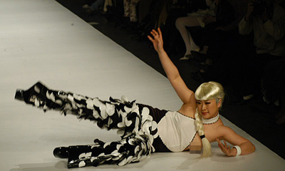 11月4日下午3點,作為中國國際時裝周的一場活動,“熊貓人”趙半狄的熊貓時裝發(fā)布會在北京時尚設計廣場舉行。網絡紅人芙蓉姐姐和楊二車娜姆均在T臺上亮相,做出驚人表演。