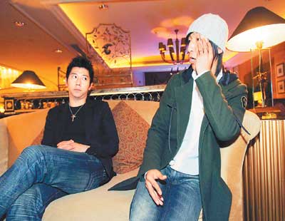 昨晚,受某演出商之邀,羽泉到重慶進(jìn)行一場商演。胡海泉下午已經(jīng)提前到達(dá),而由于陳羽凡的班機(jī)比較晚,和記者的采訪也約在了晚上7點(diǎn)半。沒想到過了8點(diǎn),一身休閑打扮的羽泉才一起出現(xiàn)在酒店大堂,羽凡戴了頂灰色的絨線帽,有點(diǎn)風(fēng)塵仆仆的樣子,好像心情還不太好。坐了幾分鐘,一臉不快的羽凡終于憋不住了,原來遲到是因?yàn)閯倓偮飞铣隽它c(diǎn)意外,“我們的車剛剛被追尾了,那些人還打傷了我的司機(jī)。”