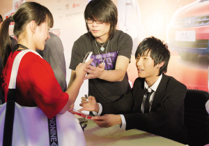 身為快男冠軍,陳楚生的人氣果然不容小覷,當(dāng)天廣場四層樓的欄桿都圍滿了圍觀群眾,“花生”們更是早早地拉起橫幅排隊。下午6點開始的簽售會,有“花生”上午10點便趕來排隊,不到一小時已經(jīng)簽出600張;顒舆^程中,陳楚生對每一位上臺索要簽名的歌迷都抱以微笑并雙手遞還CD,更是讓歌迷雀躍不已。