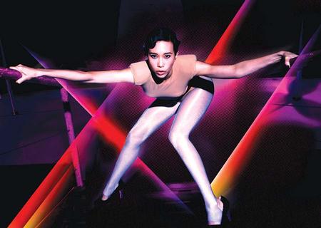 Karen身穿巴黎時(shí)尚品牌Balenciaga的膚色緊身服、足蹬高跟鞋,在燈光魅惑的舞臺上搔首弄姿,擺出擅長的現(xiàn)代舞姿勢,身材曲線一覽無遺,十分性感。