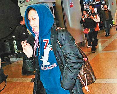 前天傍晚5點多,那英一家四口從加拿大溫哥華飛抵北京。據(jù)透露,為了避人耳目,那英一家并沒有同時走出機場,而是“兵分三路”。兒子高興和那英今年8月剛生下的小女兒在保姆和親友帶領下,首先走出機場。高興長得特別帥,黑黑的頭發(fā),大眼睛。過了一會兒,一身黑羽絨服,藍色帽衫的那英走出機場。