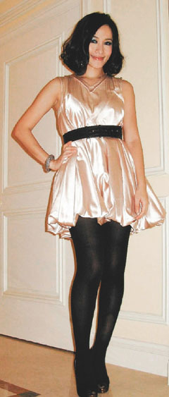 據(jù)臺灣聯(lián)合報報道,名牌服飾商日前專程把全新冬裝空運到香港給Elva試穿,她選中了一款十余萬臺幣的手工小禮服,穿上身后,嫵媚俏麗,彷佛春神提早報到,不過Elva一邊照著鏡子,一邊苦惱地問:“這要怎么御寒。俊鄙頌楦枋,愛美、也要小心不要流鼻水影響表演。
