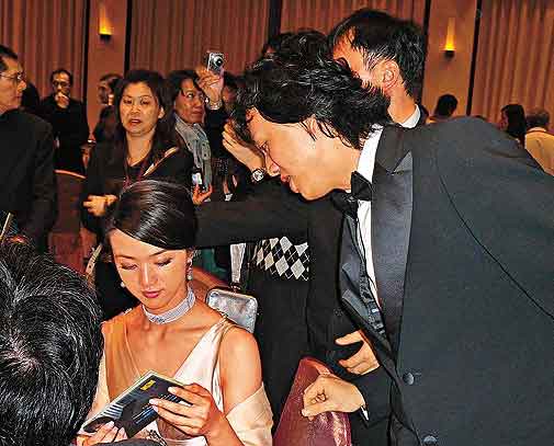 李云迪對(duì)湯唯大獻(xiàn)殷勤,在慶功宴上經(jīng)常留意她,明顯對(duì)她很有好感,記者問李云迪有沒有看《色》片?他面露尷尬說:“有,但我是看內(nèi)地版(編注:該版本刪剪了三場(chǎng)情欲戲)!碑(dāng)李云迪看見湯唯將其最新CD拿在手中時(shí),他也笑逐顏開。