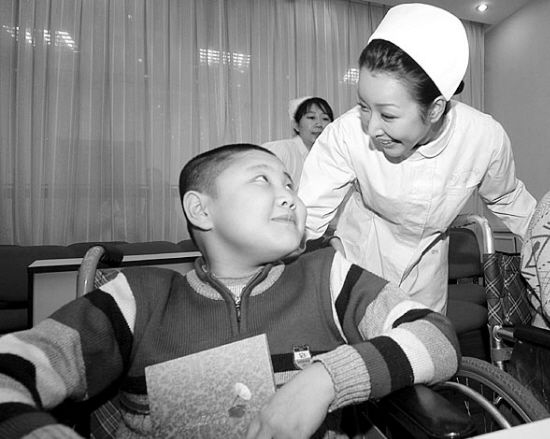12月7日,作為中國紅十字會(huì)慈善愛心大使,孫悅來到沈陽解放軍463醫(yī)院,為肌無力小患者獻(xiàn)愛心!澳慵以阼F嶺?大城市。,我們大家一起唱個(gè)歌好不好?”走進(jìn)解放軍463醫(yī)院,眼前的孫悅和真正的護(hù)士沒什么兩樣——一襲白大褂,親切和藹的話語……“唱啥?”面對(duì)眼前的大明星,一邊的護(hù)士長顯然還有些緊張:“來首……《祝你平安》怎么樣?”孫悅連忙揮手打斷:“孩子們怎么會(huì)唱這個(gè)!來,大家一起唱《讓我們蕩起雙槳》!”全場10多個(gè)小患者努力而開心地唱著,孫悅的臉上笑開了花。