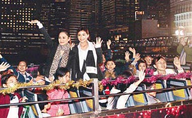 中新網12月17日電 愛心爆棚的Twins前晚專程抽空和一群小朋友坐敞篷公交車,夜游鬧市預祝圣誕節(jié)。今年蔡卓妍(阿Sa)和鐘欣桐(阿嬌)將在工作中過節(jié),阿Sa希望有機會到泰國穿泳衣過一個熱辣辣的圣誕!