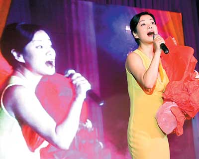 昨晚7點(diǎn)10分,記者趕到解放碑新開業(yè)的重慶國貿(mào)豪生大酒店,酒店的開業(yè)晚宴在9樓的宴會大廳內(nèi)舉行。在近10分鐘的一通開場桑巴熱舞過后,毛阿敏出場了。她用手提著淺綠色長裙腰間部位,緩步走上舞臺。伴奏樂響起,毛阿敏輕抬話筒張口:“你從哪里來,我的朋友,好象一只蝴蝶飛進(jìn)我的窗口……”