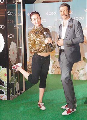 據(jù)香港東方日?qǐng)?bào)報(bào)道,身穿金色短身外套的祖兒,與幾名模特行天橋,化身“紅鞋兒”的容天后露出小蠻腰,性感有型,她還獲贈(zèng)限量別注版紅鞋。