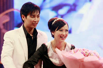 翁虹偕夫婿劉倫浩領(lǐng)取了“健康活力家庭”獎(jiǎng)。去年喜得貴子的兩人,看起來(lái)仍像熱戀時(shí)一般。這對(duì)父母極愛(ài)“獻(xiàn)寶”,不但在節(jié)目錄制時(shí)放送一段全球首播的寶寶DV,翁虹還在后臺(tái)向眾人展示手機(jī)中的寶寶照片。最近工作忙碌的翁虹抱怨:“我忙到連為家人煮一頓飯都成了奢侈的事情!彼硎緸榱苏疹櫦彝,將考慮暫時(shí)息影:“現(xiàn)在一出門(mén)工作就會(huì)想她,出來(lái)兩天就想回家。短期內(nèi)我只會(huì)接一些不會(huì)離家很久的工作,暫時(shí)沒(méi)有想要拍戲。”她還透露目前最大的目標(biāo)就是養(yǎng)好身體,再生第二胎。