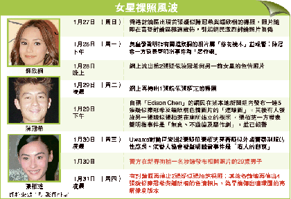 中新網(wǎng)2月1日電 震動全城的藝人裸照風(fēng)波有新發(fā)展,警方證實前日(30日)在新界拘捕一名29歲無業(yè)男子,懷疑他涉及發(fā)放近日在網(wǎng)上流傳的疑似藝人裸照,并在其家中計算機(jī)搜獲相關(guān)照片12張。被捕者昨晚遭警方落案控以一項發(fā)布淫褻物品罪名,今日在屯門裁判法院提堂。由于涉案男子被捕后,昨日凌晨繼續(xù)有新一批疑似藝人張柏芝的裸照流出,警方亦坦言被捕者“未必”是發(fā)布裸照的“始作俑者”。