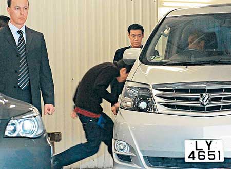 中新網(wǎng)2月27日電 陳冠希昨午2時(shí)許再由四季酒店出發(fā)到灣仔警察總部協(xié)助調(diào)查艷照事件。據(jù)香港媒體報(bào)道,十多名酒店保安在酒店停車場維持秩序,陳冠希快速步上保母車離開,八名保鑣則乘坐兩輛房車為他護(hù)航。