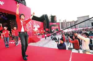 前日傍晚,由香港知名音樂人林夕和雷頌德共同為奧運贊助商創(chuàng)作的歌曲《紅遍全球》在奧運圣火點燃之際發(fā)布。在韓國著名組合Super Junior成員韓庚領(lǐng)頭下,18名來自全國各地的奧運火炬手與前奧運冠軍高敏等一起現(xiàn)場演繹了這首歌。作為目前韓國最當紅的組合Super Junior(以下簡稱SJ)里面唯一一個中國成員,韓庚在中國的人氣銳不可擋,對于這次有幸擔(dān)任1號火炬手,他前晚接受本報獨家專訪時表示感到很開心,一定要看奧運的開幕式,并且他透露今年會將大部分時間放在中國,而且SJ也會分組一隊專門針對中國市場的組合,并計劃推出中文專輯。