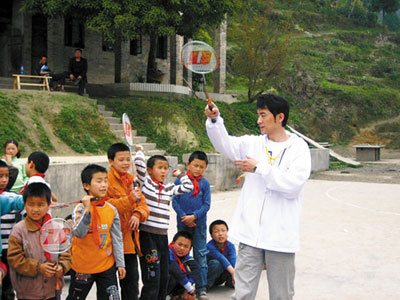 《少年包青天》中足智多謀書生氣十足的“公孫策”任泉,曾經(jīng)的“乖乖虎”蘇有朋,都搖身一變,成了鄉(xiāng)村小學(xué)老師。4月4日至7日,蘇有朋和任泉先后帶著很多體育器材,分別來到河南和湖南的鄉(xiāng)村小學(xué),當(dāng)了兩天老師。兩天的教師生涯里,任泉和蘇有朋各顯神通,打出不同“王牌”爭取學(xué)生青睞。