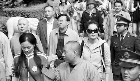 王菲、那英并非專程來蓉。下了飛機(jī)之后,她們立刻驅(qū)車前往峨眉山。下午2:30左右,一行人在峨眉山管委會工作人員的陪同下,出現(xiàn)在了萬年寺。到達(dá)無梁磚殿時,王菲摘掉墨鏡,虔誠地跪在墊子上,雙手合十,閉上雙眼許愿祈福,時間長達(dá)20分鐘。在其他殿,王菲或跪或站,沒有落下一個殿。兩人隨后前往寺里的禪房聽大師講解佛法,一呆就是兩個小時。峨眉山管委會的一位負(fù)責(zé)人事后透露,王菲早在月初就已準(zhǔn)備前往峨眉山,“她在成都的一位朋友一周前就和我們聯(lián)系,希望屆時幫忙維持秩序。幸好昨天我們增派了近20名工作人員,不然游客一亂,還真要擾了寺廟的清靜!睋(jù)悉,王菲在禪房和大師暢談佛法,最后還主動坦白,“早就仰慕萬年寺的大名,所以這次專門前來許愿。”至于王菲許下了什么心愿,外人并不知曉,但峨眉山管委會替那英澄清了耍大牌的嫌疑,“聽說她好像生病了,所以精神一直不太好!