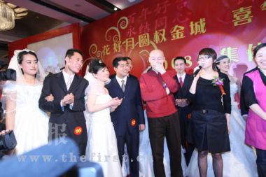 婚禮現(xiàn)場一直以浪漫的音樂做背景,彩帶飄揚(yáng),鮮花搖曳。新娘新郎們興奮地參加權(quán)金城為他們準(zhǔn)備的各項活動,他們的臉上始終洋溢著幸福的笑容。宋丹丹說:“平日在小品里經(jīng)常演農(nóng)民工,看到這些來自農(nóng)村的新人們覺得特別親。農(nóng)民工咋了,勞動最光榮!我們這次來就是要喚起全社會對農(nóng)民工的關(guān)愛,他們?yōu)槌鞘薪ㄔO(shè)做了很大貢獻(xiàn),社會應(yīng)該為他們提供力所能及的幫助,解決他們的困難,讓他們生活得更幸福!