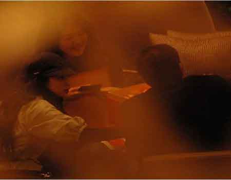 羅伯·明可夫朝靠窗處走去,此時,回頭的李冰冰剛好讓記者看了個仔細。簡單的寒暄過后,羅伯·明可夫靠窗位置坐下。為了更仔細的觀察到二人當(dāng)時的情況,記者轉(zhuǎn)身上到二層找尋最佳位置取證拍照,在鏡頭中,起初李冰冰與旁邊的助理不時拿出一些照片和資料給羅伯·明可夫看,李冰冰還不時用手指著一些照片在解釋什么,雖然羅伯·明可夫似乎沒有太多肢體上的語言,但從李冰冰手舞足蹈的表現(xiàn)中,可以看出二人交流的很愉快(看來李冰冰的英語練得不錯)。交談的過程中,羅伯·明可夫不時手托著下巴認真聆聽,不時談笑風(fēng)生,在隨后的時間里,雙方似乎達成了某些事宜,李冰冰與助理很認真的說著某事情,而羅伯·明可夫則坐在一旁開始玩弄手機,偶爾加入到李冰冰與助理的談話中。