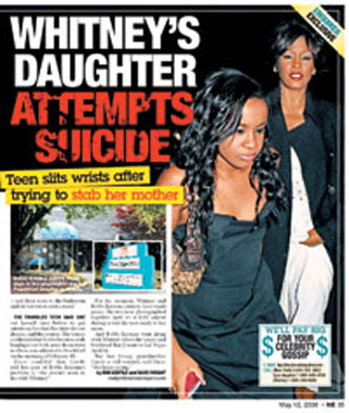 近日有美國某雜志爆料,歌壇天后級人物惠特尼·休斯頓曾遭女兒波比襲擊。據(jù)稱此次波比是準備自殺,而在自殺前想給母親致命一擊。事發(fā)后,波比被制服并送往精神科醫(yī)院治療。