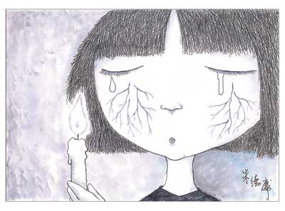 他說(shuō):“這兩天我和太太盯著電視上播出的一幕幕災(zāi)區(qū)畫面,兩人不發(fā)一語(yǔ),腦袋中不斷地冒出各種問(wèn)號(hào),卻又不知以什么問(wèn)號(hào)問(wèn)天!币惨虼耍闷鸸P后畫出了兩幅作品,“這圖也許有意義也許沒(méi)意義,我想我的感受恐怕不及災(zāi)區(qū)朋友們的千萬(wàn)分之一吧。人雖在臺(tái)灣,但心和你們?cè)谝黄!?記者趙明宇)