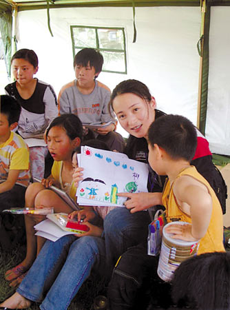 蔣勤勤跟隨全國婦聯(lián)“母愛在行動(dòng)”小組奔赴四川重災(zāi)區(qū)綿陽,已經(jīng)身為人母的她得知地震之后,首先想到的就是災(zāi)區(qū)的兒童,當(dāng)?shù)弥獮?zāi)區(qū)緊缺奶粉等嬰兒食品時(shí),她特意帶去了價(jià)值10萬元的奶粉和牛奶。在災(zāi)區(qū)的幾天走訪,蔣勤勤主要探訪了災(zāi)區(qū)懷孕的準(zhǔn)媽媽和失去雙親的孤兒。蔣勤勤透露,災(zāi)區(qū)目前急缺的除了帳篷和藥品,許多生活必需品也非常匱乏,她此行就了解到,災(zāi)區(qū)就急需各種女性生理用品。