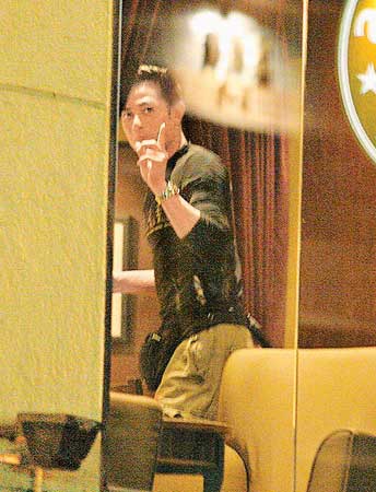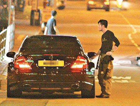 前晚一身便服打扮的城城,駕駛其黑色Benz跑車到咖啡店,泊車后到店內(nèi)買了一杯大號(hào)咖啡及一件蛋糕,他瞥見在場(chǎng)有記者遂選坐背窗座位。約10分鐘后城城喝完后起身時(shí)面向窗外對(duì)記者手指指,然后捧咖啡火速開車返家。