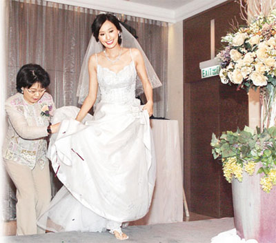 中新網(wǎng)5月29日電 據(jù)香港太陽報報道,陳法拉日前為新劇《溏心風暴之家好月圓》拍攝一場結婚戲,身著純白婚紗的她,身姿優(yōu)美,高貴典雅。