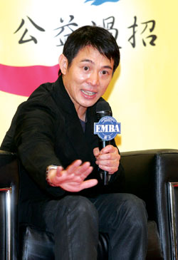 中新網(wǎng)6月3日電 據(jù)臺灣“東森新聞”報道,功夫巨星李連杰這次到臺灣不宣傳電影,他推廣的是一元行善;2日晚間他走進政大EMBA講堂,在臺灣的企業(yè)精英和教授面前,足足說了兩個小時,而且他有問必答,風趣的言談成功的把一元行善的想法,介紹給在場的政大師生。