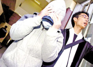 郭鎮(zhèn)瑋為躲避鏡頭穿得相當(dāng)嚴(yán)實(shí)。