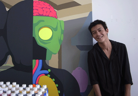 據(jù)香港《太陽報》報道,陳冠希帶著一雙即將在其潮店Juice發(fā)售、名為“Visvim Clot Royale Christo”的鞋子送給KAWS做見面禮,對方火速將陳冠希新照片與鞋子的相片上載博客。照片中膚色與發(fā)色都變黑的Edison站在彩色繽紛的巨畫前拍照,笑容燦爛,看上去心情甚佳。