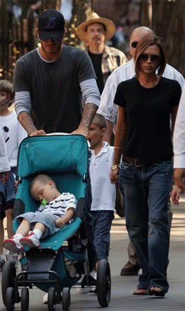 中新網(wǎng)6月13日電 據(jù)英國《每日郵報》報道,美國當(dāng)?shù)貢r間星期三下午,貝克漢姆和維多利亞帶著三個兒子,大游迪士尼樂園,F(xiàn)場所見,他們的大兒子布魯克林與二兒子羅密歐已漸有明星架勢,小兒子克魯茲則獨享寶寶車,睡得十分香甜。