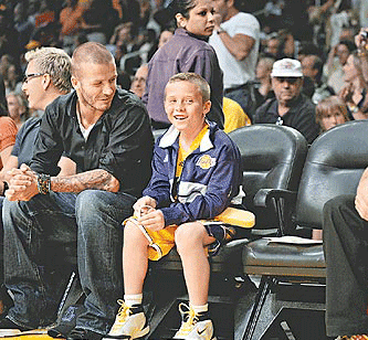 小貝帶長(zhǎng)子布魯克林看NBA總決賽。