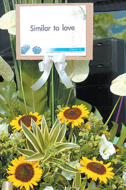 從不諱言渴求愛(ài)情滋潤(rùn)的蕭亞軒,下午3點(diǎn)半簽唱會(huì)開(kāi)場(chǎng)前,收到神秘男子贈(zèng)花,因未署名,蕭亞軒先自我安慰,稱該男子應(yīng)知她是雨后,才會(huì)送上象征艷陽(yáng)的太陽(yáng)花,祈求能有好天氣。 在媒體逼問(wèn)下,蕭亞軒先推說(shuō)可能是歌迷所贈(zèng),她還拿麥克風(fēng)詢問(wèn)歌迷是否是他們給的驚喜,結(jié)果現(xiàn)場(chǎng)一陣靜默,間接印證應(yīng)該是追求者所贈(zèng)。