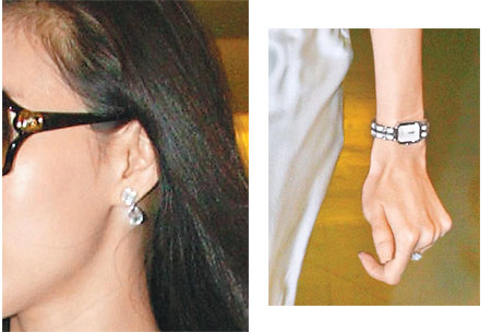 據(jù)臺(tái)灣媒體報(bào)道,曾馨瑩左手無(wú)名指戴大鉆戒,珠寶專家目測(cè)約10克拉,價(jià)值超過(guò)6000萬(wàn)元,而她左手腕戴的雙排鉆煉表,估計(jì)約1700萬(wàn)元,手提約19萬(wàn)200元的愛(ài)馬仕“Lindy”包。外傳她赴港是為采買婚禮禮品。雙排鉆煉表、鉆戒和鉆石耳環(huán),估計(jì)價(jià)值逾7700萬(wàn)元。
