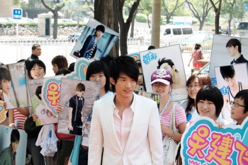 發(fā)布會(huì)當(dāng)天,現(xiàn)場人潮攢動(dòng),眾多歌迷從外地專程趕來,癡心的小“飛鼠”們穿著統(tǒng)一的會(huì)服,高舉著各色的燈牌,一遍又一遍的呼喊著吳建飛的名字,焦急,緊張,期盼的氣氛幾乎讓在場的每個(gè)人手心都滲出了汗水,所有人都在期待著今天的主角吳建飛的出現(xiàn)。下午1點(diǎn)半,一輛加長的超豪華林肯轎車突然映入了大家的眼簾,伴隨著一陣陣的驚呼,轎車?yán)镒叱隽艘簧戆咨餮b的吳建飛,站在眾人面前的“新一代歌壇小天王”吳建飛今天化身成為了風(fēng)度翩翩的貴公子,用他特有略帶羞澀的微笑向到場的所有朋友們致謝。