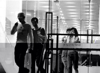 當(dāng)晚,記者在黃曉明家附近的一幢寫字樓前發(fā)現(xiàn)了黃曉明的商務(wù)車,黃曉明在司機(jī)陪同下朝一家餐廳走去,在餐廳門口他打了一個(gè)電話,表情很溫柔,似乎在聯(lián)系朋友吃飯。大約一小時(shí)后,黃曉明和司機(jī)走出餐廳,他面無表情低著頭,跟在他身后的還有兩個(gè)女孩,其中一位正是他的緋聞女友李菲兒。李菲兒一邊走一邊打電話,表情輕松,另一位可能是她的助理。一行人快步來到黃曉明的汽車旁,黃曉明和李菲兒一起坐在了后排座上,而另一位女孩坐在了副駕位置,透過汽車玻璃,記者看見黃曉明一上車就微微彎腰抱住李菲兒,李菲兒則親熱地趴在黃曉明的腿上。