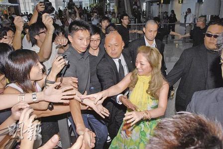 據(jù)香港《明報》報道,濱崎步昨午1時30分自日本抵港,一身古銅色皮膚的她穿著低胸綠色長裙,圍著黃色絲巾,見到半百歌迷迎接心情大好。香港唱片公司聘請30名保安護(hù)送,她本身日本貼身保安亦有6、7名。