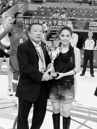 繼商業(yè)廣告在不少電視臺恢復(fù)播出之后,“不雅照”事件女主角阿嬌(鐘欣桐)昨天現(xiàn)身海寧,為“2008FIBA鉆石杯洲際女子籃球賽”總決賽澳大利亞隊(duì)對美國隊(duì)的比賽助興,F(xiàn)場,她除了主持開球禮,還被委任為FIBA宣傳大使。