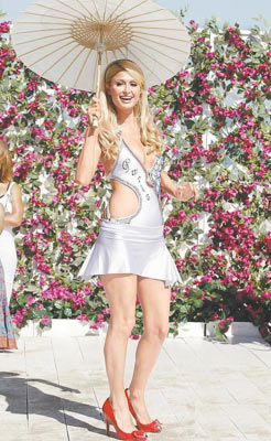 帕麗斯昨為接發(fā)飾品站臺,穿泳裝出席派對。
