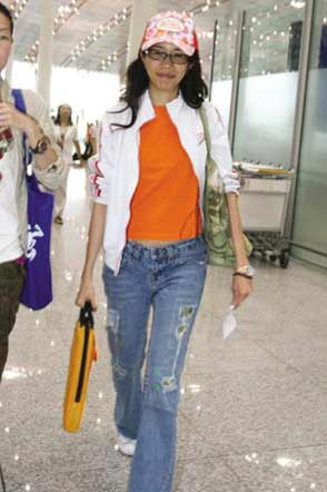 當(dāng)天出現(xiàn)在機(jī)場的莫文蔚打扮得也算低調(diào),但其實是很講究的:橙色T恤搭配白色運動外套,再加上橙色的電腦包、橙色的貨車帽、磨舊的牛仔褲,以及她一臉燦爛如陽光的笑容,既親和又輕便,是各路粉絲出游、訪友以及外出運動的首選造型。