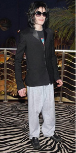 中新網(wǎng)9月1日電 “聯(lián)合早報(bào)”報(bào)道,上周五(8月29日)是過氣流行天王邁克爾·杰克遜(Michael Jackson)的50歲生日,前一晚他現(xiàn)身拉斯維加斯與三名兒女進(jìn)餐慶祝,而他接受美國電視臺(tái)訪問時(shí)表示自己生日過得很開心,但最特別的是他竟上身穿西裝,下身穿睡褲給傳媒拍照。