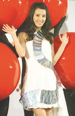 配合代言活動,她昨天穿的一件禮服,被歌迷以超商儲值卡10500點標(biāo)走。事實上,她的歌曲“舞娘”、“Love Love Love”因在奧運會場上放送,意外被歐洲注意到,因而進(jìn)入排行榜,她先前又進(jìn)入英國某雜志AskMen網(wǎng)站Top99位女星排行榜,影響力被形容為“喊水會結(jié)凍”,而宣稱中文不好的她,果然聽不懂。