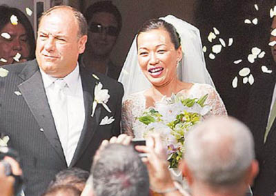 中新網(wǎng)9月2日電 熱門美劇《黑道家族》(Sopranos)男主角詹姆斯·甘朵菲尼(James Gandolfini)上周六梅開二度,在前模特兒黛柏拉·林(Deborah Lin)的家鄉(xiāng)夏威夷檀香山迎娶她。詹姆斯的8歲兒子當(dāng)他的伴郎,消息人士形容:“他們深情接吻,看起來非常幸福!