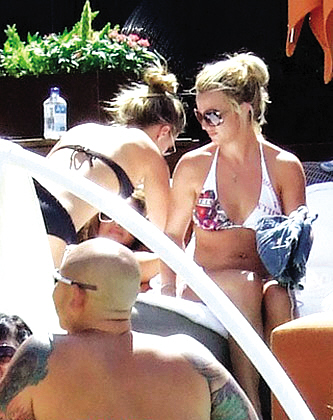 上周日,布蘭妮亮相度假村內(nèi)的游泳池邊,享受周末午后時光。身穿性感比基尼的她依舊是粗腰肥臀,身材無改善,兩位身材健碩的保鏢如影隨形地保護(hù)她的安全。
