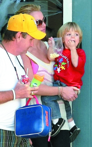 布蘭妮上周五和爸爸一起接兒子放學(xué)。