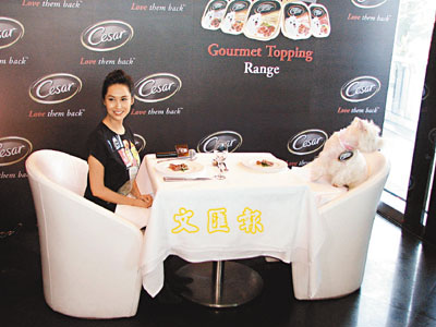 中新網(wǎng)10月22日電 據(jù)香港文匯報報道,朱茵昨日出席“西莎主人及愛犬星級盛宴”,和白威狗一起共進(jìn)午餐,又親自炮制狗狗美食,一向愛狗的朱茵更早于前日就和這頭白威狗一起做訪問及拍照。