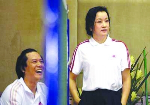 明星羽毛球隊的每個成員都有一個綽號,劉曉慶叫“火鳳凰”,她的男友阿峰號稱“玉麒麟”,比賽中,現場觀眾都希望看到這對“恩愛情人”配對出擊,遺憾的是,可能是有所顧忌吧,大家的愿望直到比賽結束,也沒有實現。