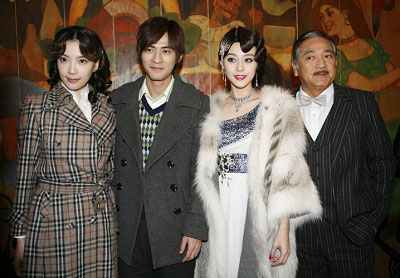 范冰冰擔(dān)任制片人的第二部電視劇《金大班的最后一夜》正在上海熱拍,劇組昨日在楊浦區(qū)的一棟洋房內(nèi)組織媒體探班,范冰冰偕男主角周渝民、方中信、黃少祺、秦沛等以劇中造型出現(xiàn)在媒體面前。在采訪中,老板兼演員的范冰冰以及首次出演年代戲的仔仔周渝民成為媒體關(guān)注的焦點(diǎn),兩人表現(xiàn)出“相見恨晚”的樣子,難怪仔仔最后被問到是否會與大S復(fù)和的消息,仔仔很肯定地說:“沒有”。